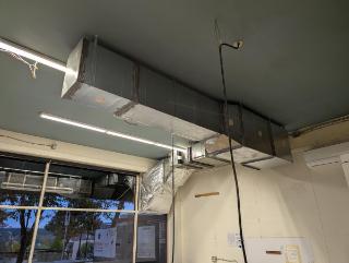 This project took place in a well-loved local bakery, where we were tasked with modifying the existing make-up air system after the intake hood needed to be relocated. The change required reconfiguring the duct layout to maintain proper airflow balance and ensure consistent ventilation throughout the kitchen.