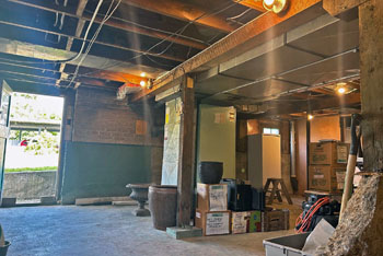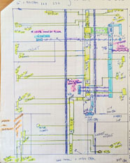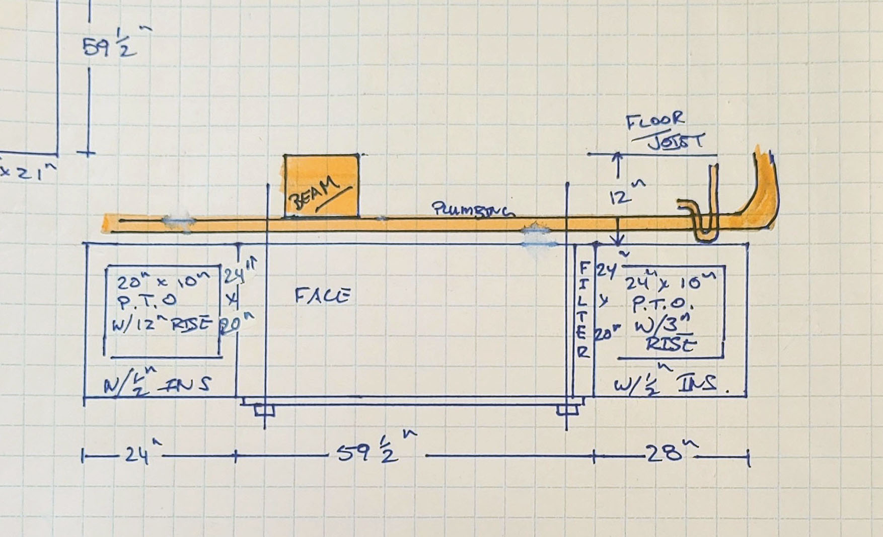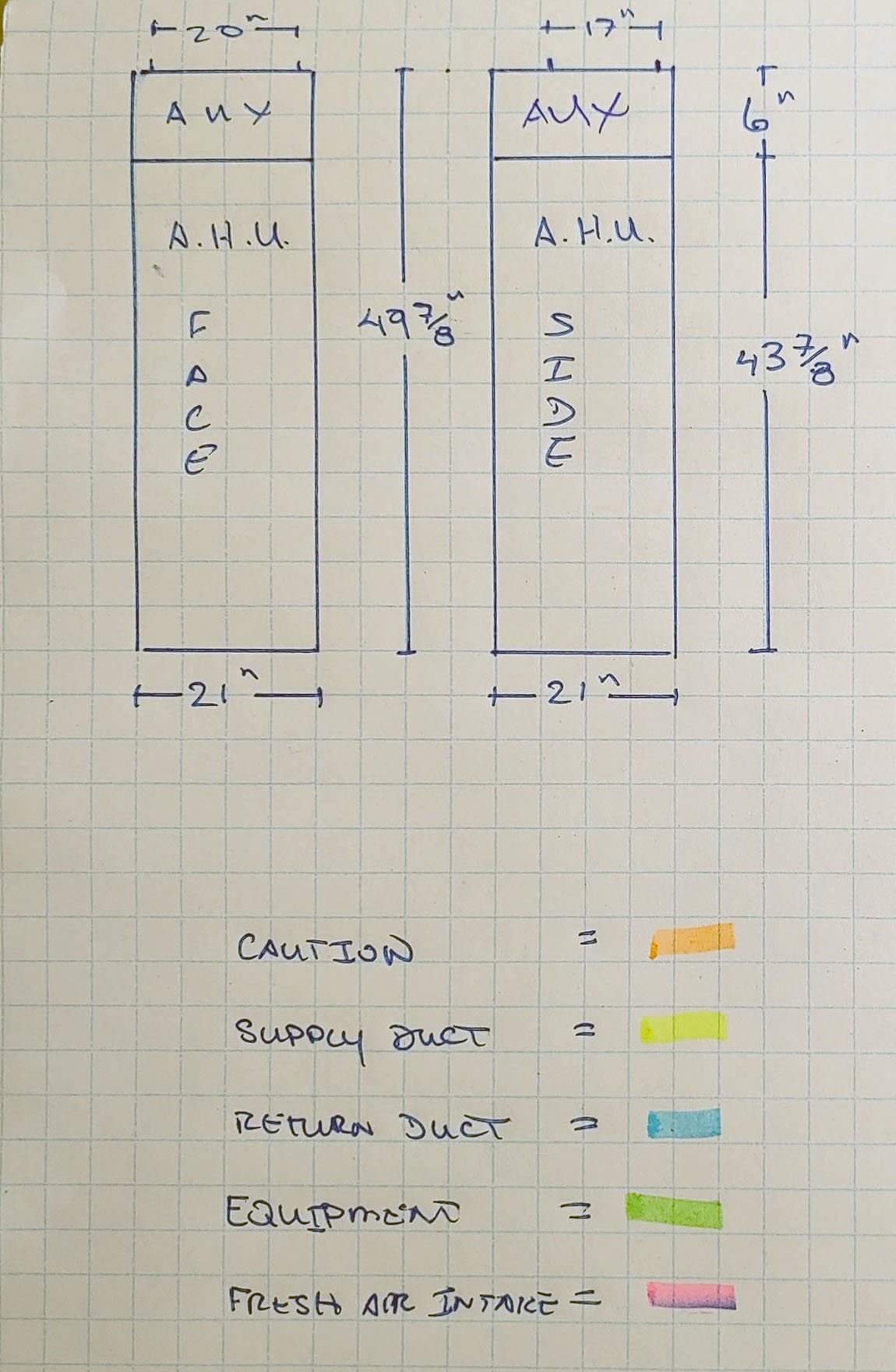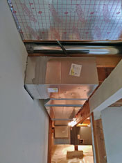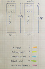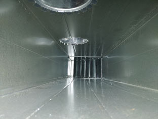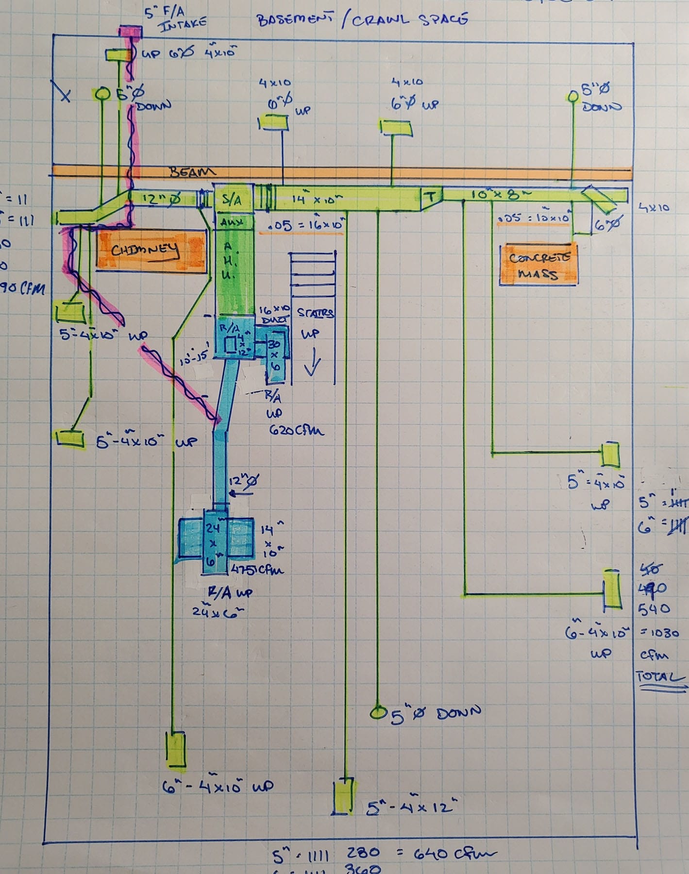 This retrofit project consisted of removing an old inefficient oil furnace and replacing it with a new air handler/heat pump. The new ductwork is far more efficient while being far more compact. Included inside the ductwork are turning vanes, and acoustic insulation to guide the air and effectively reduce turbulent air noise.