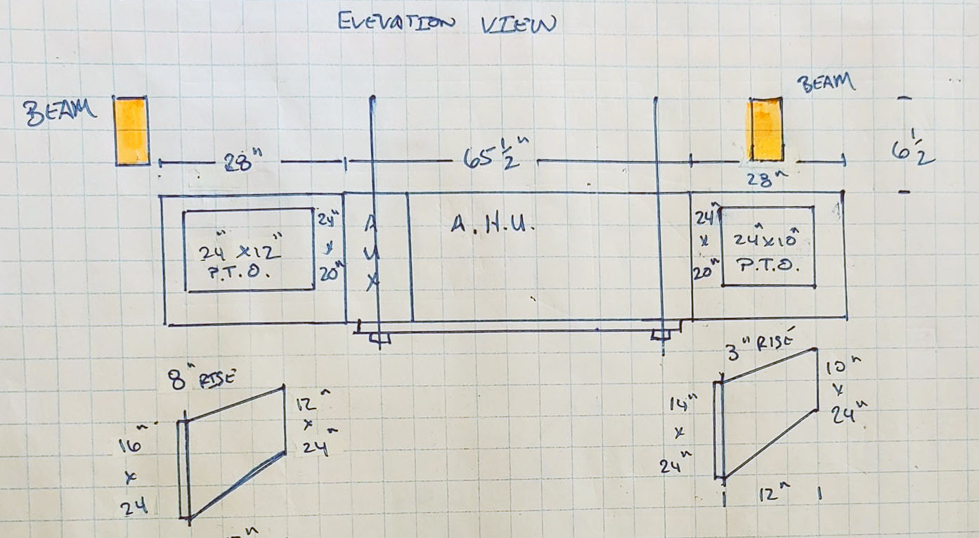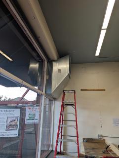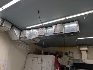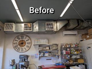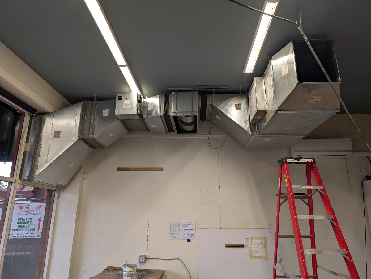 This project took place in a well-loved local bakery, where we were tasked with modifying the existing make-up air system after the intake hood needed to be relocated. The change required reconfiguring the duct layout to maintain proper airflow balance and ensure consistent ventilation throughout the kitchen.