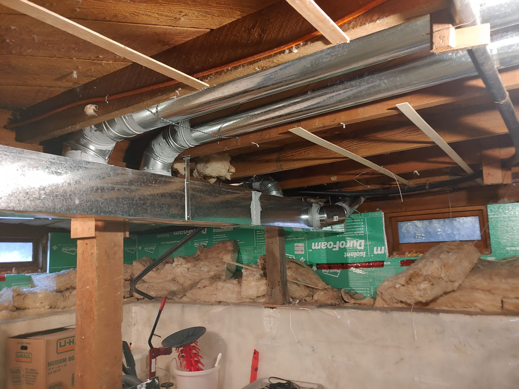 This project involved replacing a deteriorated dryer vent system located in an unconditioned crawlspace. During the inspection, we found that the existing flex duct had separated, allowing lint and moisture to accumulate throughout the space. Without regular maintenance, the issue went unnoticed for years, leading to significant buildup.