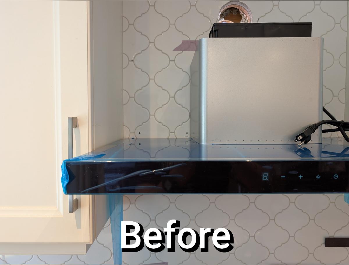 This project involved replacing a range exhaust hood that had been overworked throughout its life due to an undersized outlet duct. The restricted airflow caused the fan to operate under constant strain, reducing performance and shortening its lifespan.