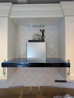 As part of the replacement, we upgraded the venting to the correct size to ensure proper airflow and long-term reliability. Extra care was taken during installation to precisely raise and position the new hood, covering the existing holes in the tile for a clean, professional finish.