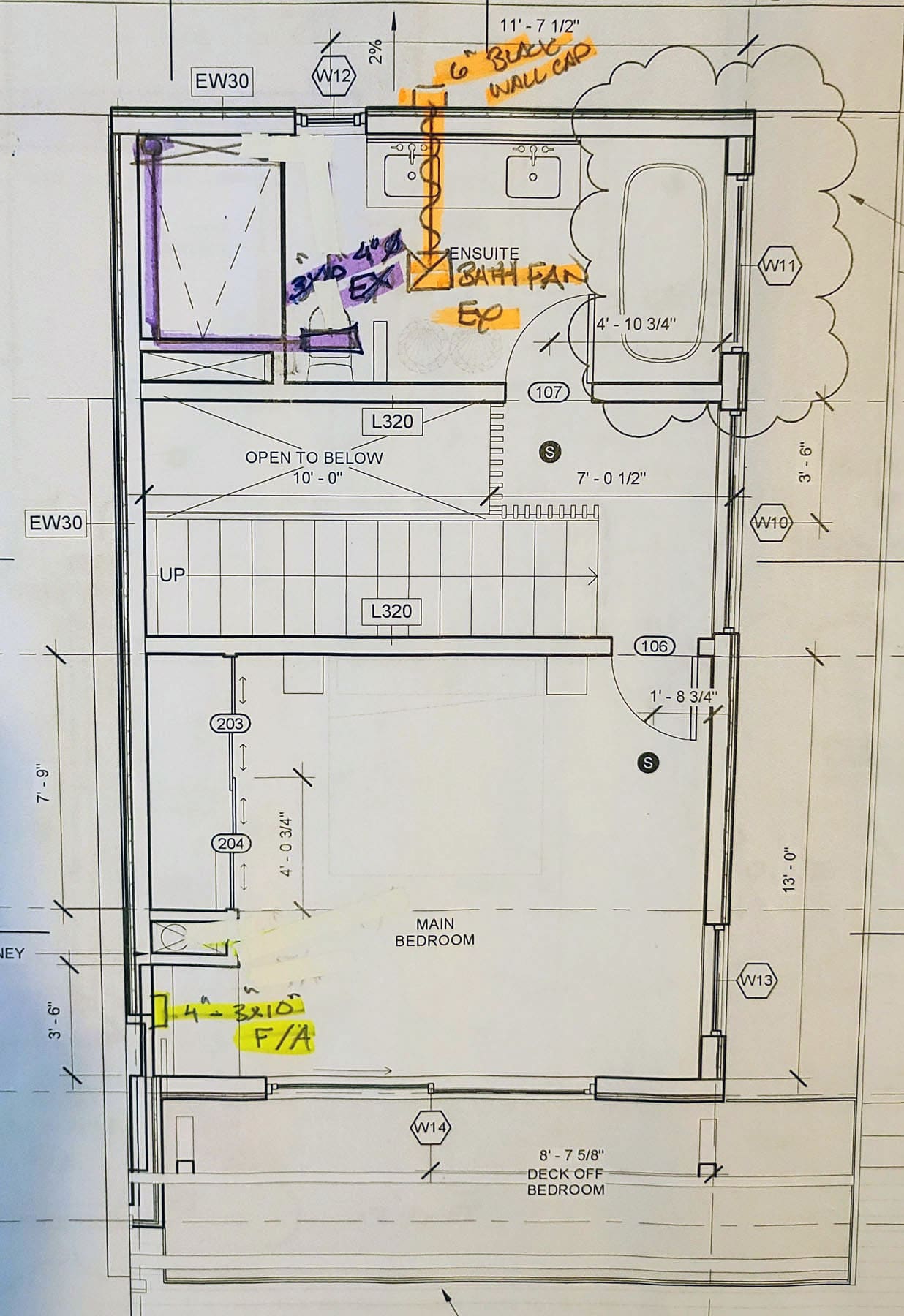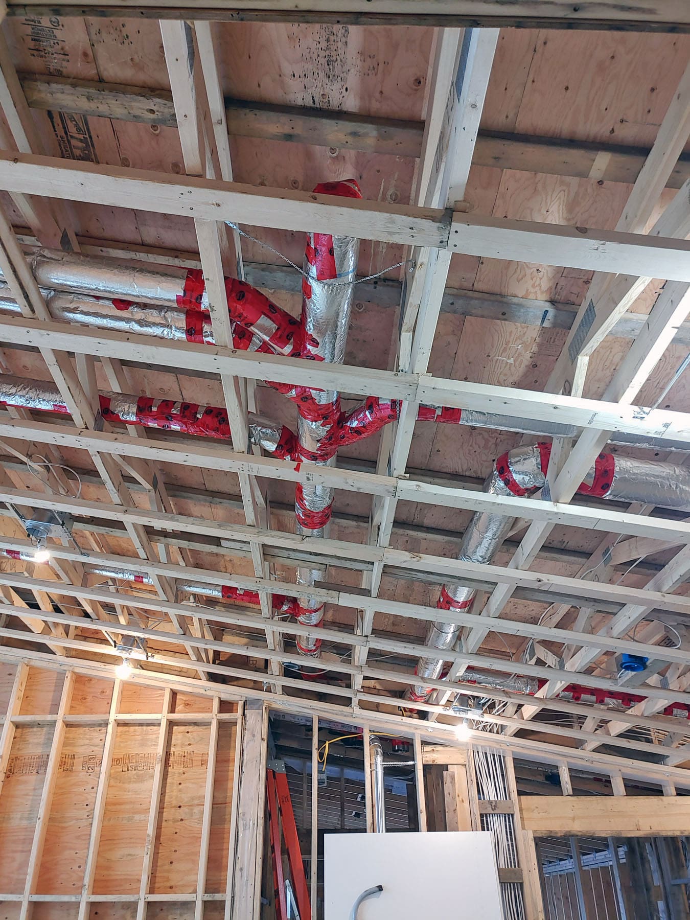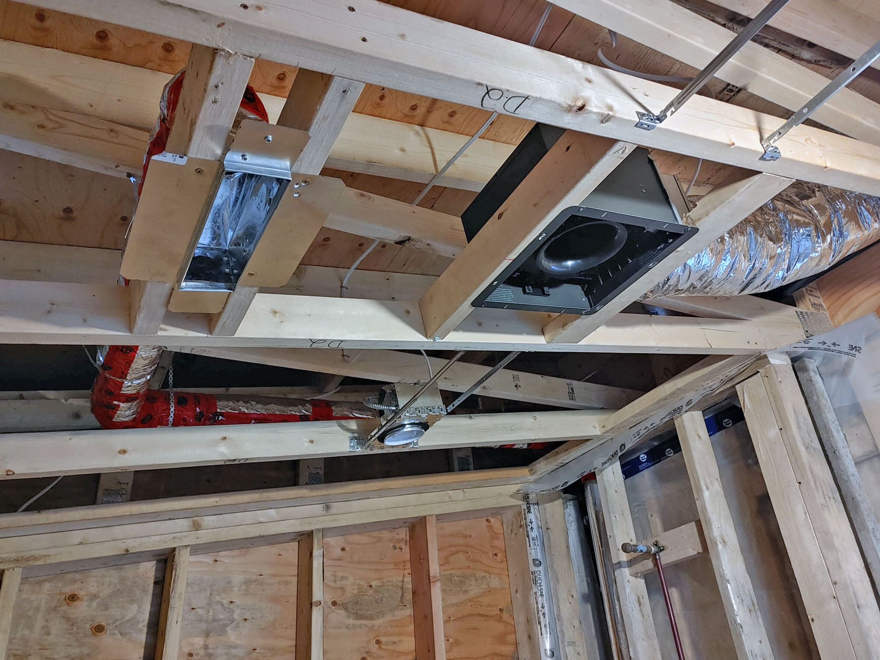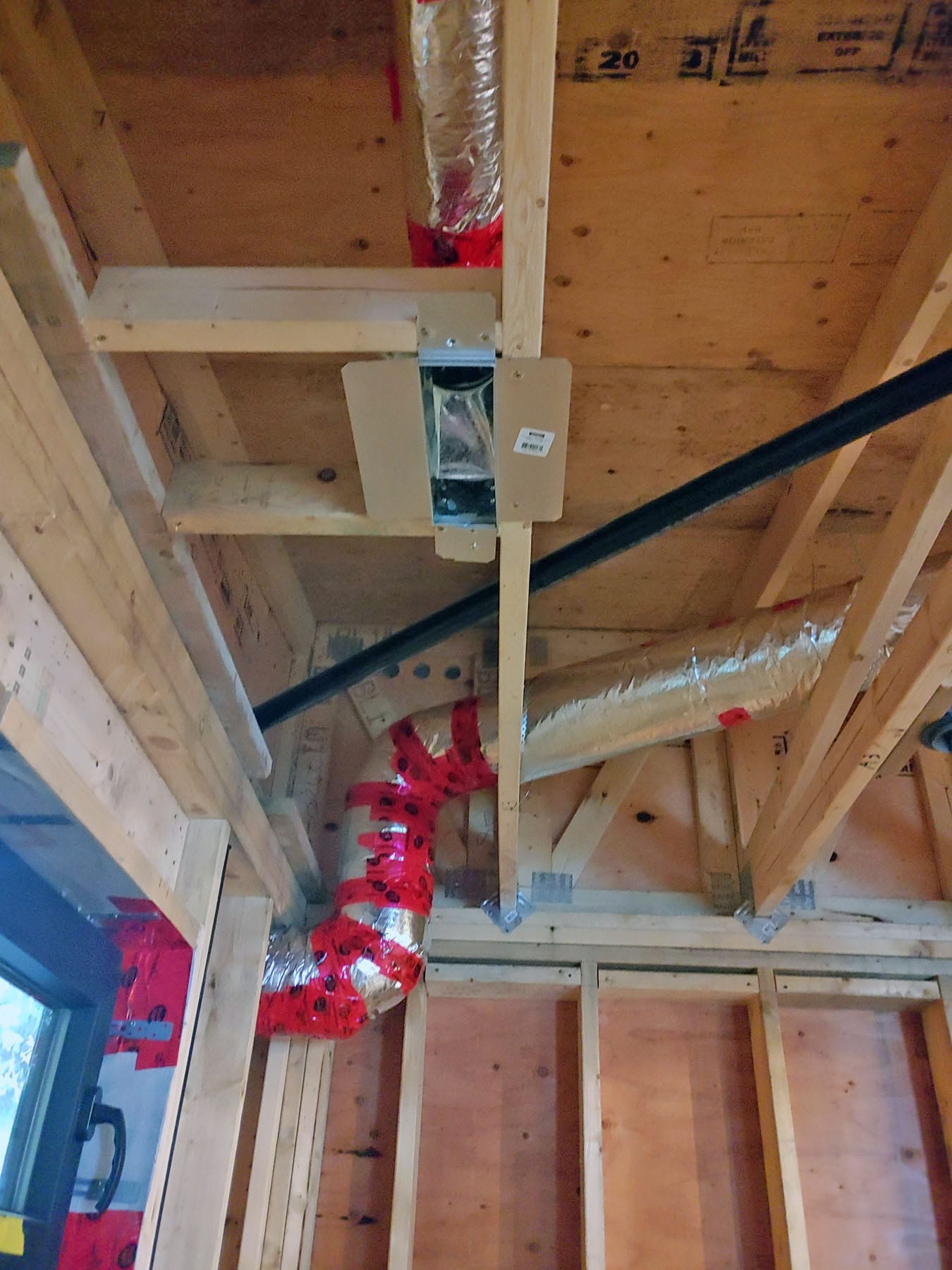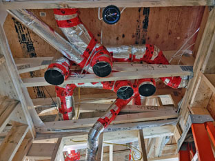 This new construction project consisted of an HRV and exhaust fan ventilation installation, including an insulation wrap to prevent condensation from forming in or around the duct, appropriate wye branches to ensure proper efficiency, and a “cushion head” for proper pressures and velocities.